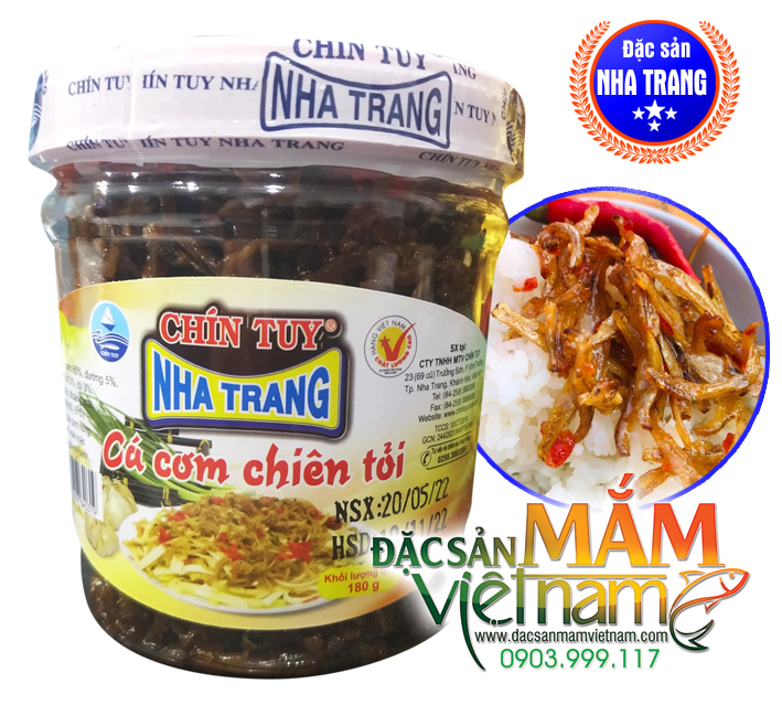 Cá cơm chiên tỏi Chín Tuy là thương hiệu nổi tiếng Nha Trang và khẳng định chất lượng cũng như giá thành hợp lý. Bạn có thể mua làm quà biếu cho người thân sau khi đi du lịch về, với giá thành hợp lý cho một món quà cũng tiện lợi, cứ để trong ngăn mát tủ lạnh khi nào cần dùng bỏ vô lò vi sóng hoặc xào sơ qua thì có thề dùng ngon rồi. Ăn với cơm nóng hoặc cháo trắng thì bao ngon.